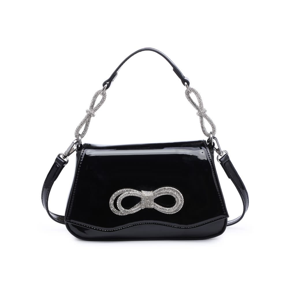 Product descriptionItem Type: Evening BagMaterial: Vegan LeatherClosure: Snap Handle Drop: 5" Additional Shoulder Strap: 22-25.5"Exterior Details: Smooth all-over + silver hardwareInside Features: Fabric lined, open compartment, 1 zipper pocketExtras: Detachable , adjustable strapDimensions: 9" L x 2.25" W x 5.75" H